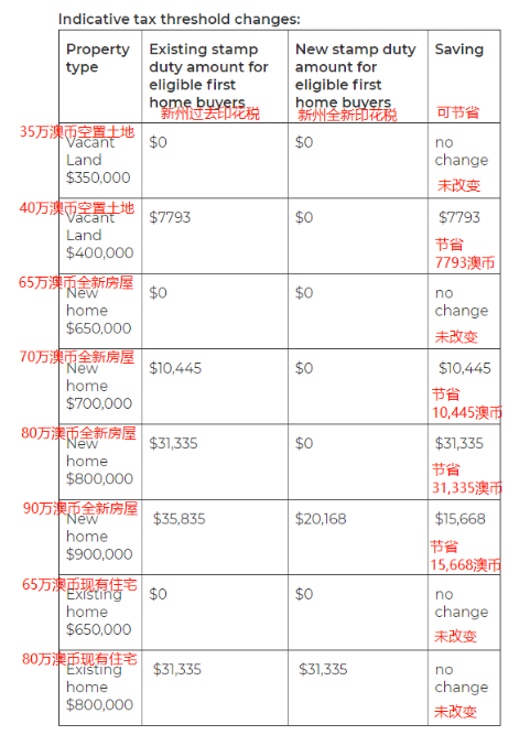 新南威尔士州政府宣布,首次置业者购买价值80万澳币以下的新建住房将取消印花税,而购买价值80~100万澳币的住房将享受非常大的印花税折扣。