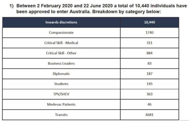 根据移民局最近提供的统计数据,截至6月22日,共有10440项入境豁免获得批准。豁免类别及数目如下: