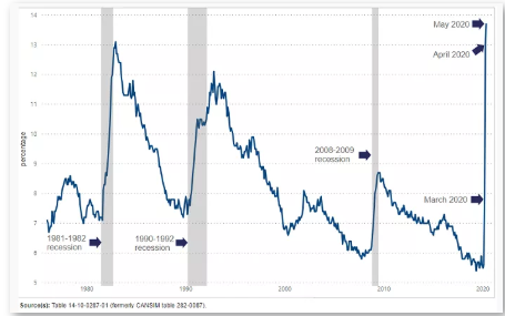 近日,加拿大统计局发布了5月份的劳动力市场报告结果,调查数据来源于5月10日至5月16日这一周的劳工市场状况,全国失业率上升至13.7%,再一次创下了历史新高。
