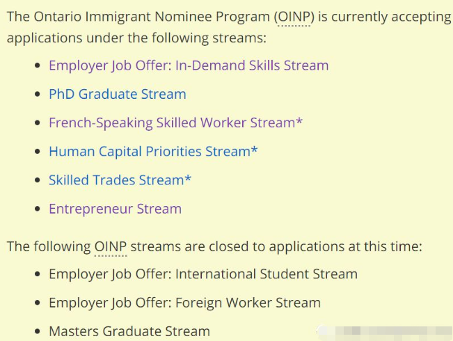 根据安省移民厅的官网消息,目前仍在开放中的移民项目是: