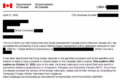 为了达到共同的目标,我司开始一个多月的文案准备和雇主沟通,然后帮他递交了LMIA的申请。