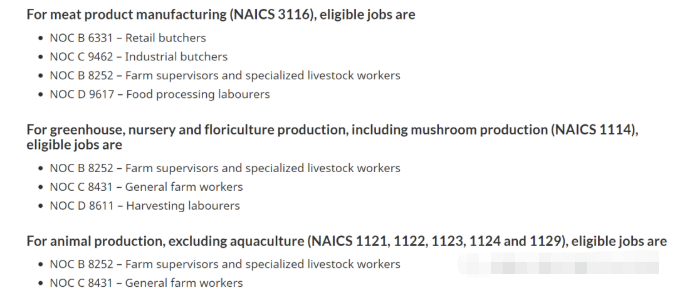 简单解读一下,就是上述6类职业,加拿大雇主不用打广告就可以为申请人申请LMIA(劳工市场建议书),获得批准后申请人可以申请工签,获得工签后为雇主工作1年,就可以申请农业食品试点项目了。