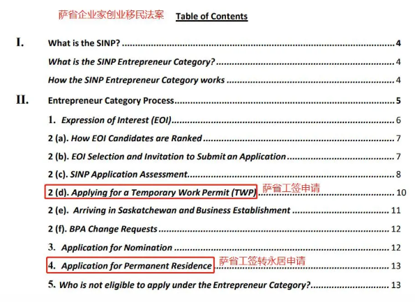 加拿大是一个多元文化国家,移民历史悠久。每个省都有自己的移民政策和项目。与其他省份提名的项目相比,萨斯喀彻温省的企业家移民计划一直以其早期工作许可申请门槛低无语言、教育、个人所得税要求、资金来源解释松散吸引着来自世界各地的申请人,后期常住申请门槛低无营业额、无利润要求、半年内创业。那么,申请人能否在这样一个有利的项目中获得自己的身份?从下面的截图中,我们可以看到整个项目的过程都清晰地写在萨斯喀彻温省法案的目录中。因此,申请劳动签证和永久居留转移是一个完整的移民项目,不存在项目脱档或无法转移身份的情况。
