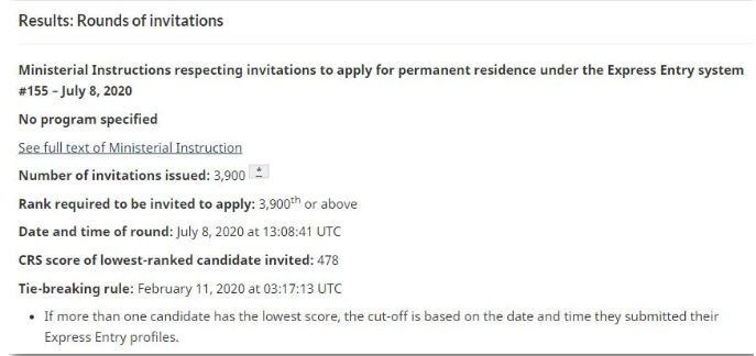 加拿大时间7月8日联邦快速通道移民Express Entry在历经四个月分拆邀请后(PNP & CEC)於今日终于恢复正常,包括ITA分数也恢复到疫情前的分值一如预期在经历了一段较长时间的低分邀请后加拿大联邦快速通道EE再次回到正轨低分不再。