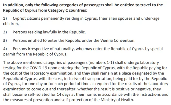 重要提示:如果您在抵达塞浦路斯之前的14天内曾在任何其他国家旅行,将面临与来自该国家旅客相同的要求。