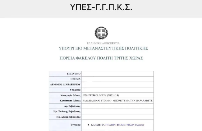 根据移民与庇护部的决定,希腊移民局已于6月19日(星期五)启动网上预约发放居留许可程序。第三国公民可以自行登入居留许可申请进度查询网站:http://pf.emigrants.ypes.gr