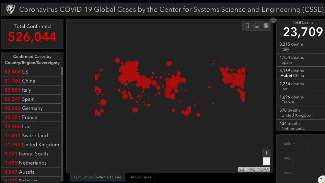 当地时间3月26日,世卫组织最新一期报告显示,截至北京时间3月26日17时,全球新冠肺炎新增近5万例,达到了49219例,死亡新增2401例。其中疫情最为严重的欧洲区域已确诊250287例(新增29771例),死亡13950例(新增1964例)。另据约翰斯·霍普金斯大学实时统计数据,截至美东时间26日17时,全球确诊病例突破52万,达到了526044例,累计死亡23709例,累计治愈122066例。数据显示,除中国以外,意大利、美国、西班牙、德国、法国、伊朗、瑞士、英国等8国确诊病例均过万,疫情已波及全球160多个国家和地区。其中,欧洲各国的防疫形势异常严峻。西班牙死亡病例数量全球第二,仅次于意大利。
