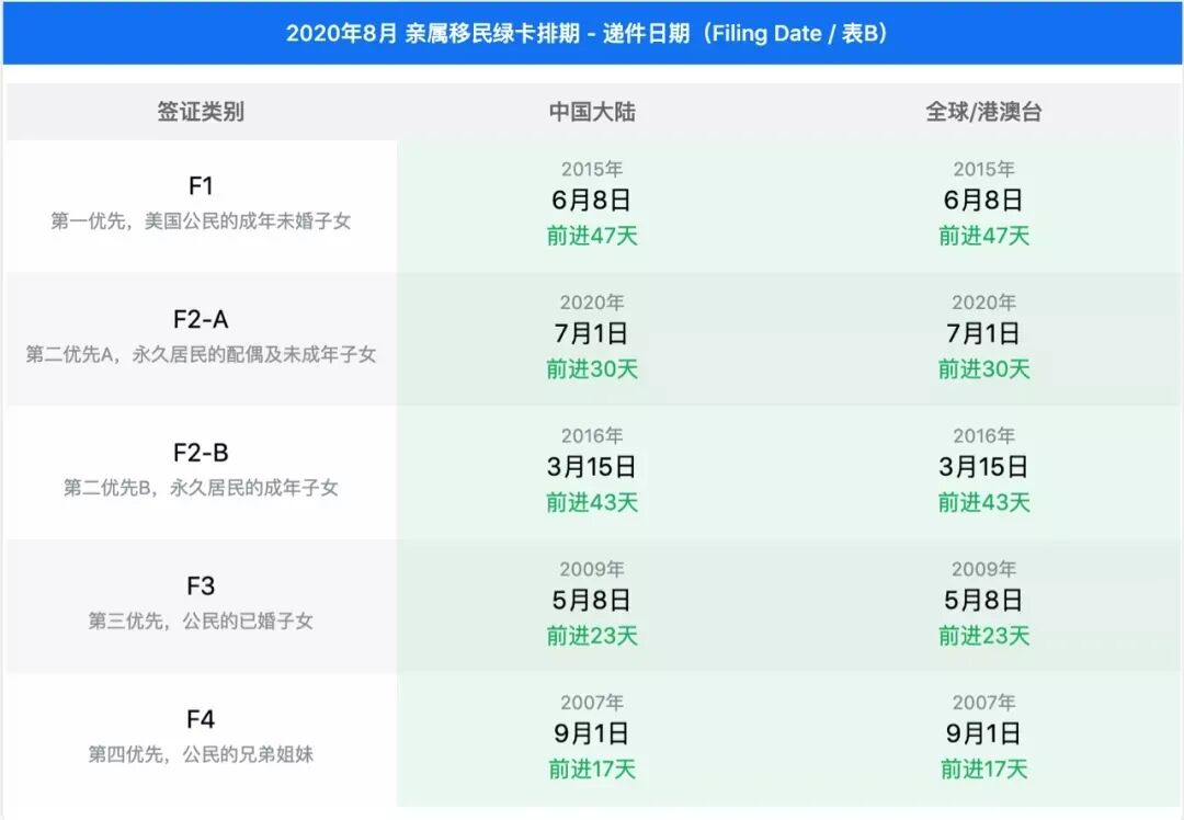 美国国务院签证办公室公布了2020年8月的签证公告,关于职业移民和亲属移民排期表详情见以下表格: