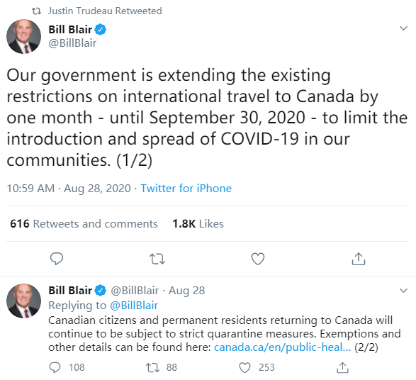 而8月31日则是加拿大第二次宣布延长旅行禁令的最后一天,禁令会不会在本月取消,成为了许多人关心的话题。
