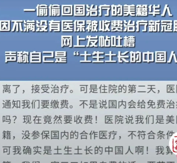 而“苏州河”却抱怨,他们从美国回来后,由于没有医保竟然要自费看病。由此心生不满,遂网上发帖求助...