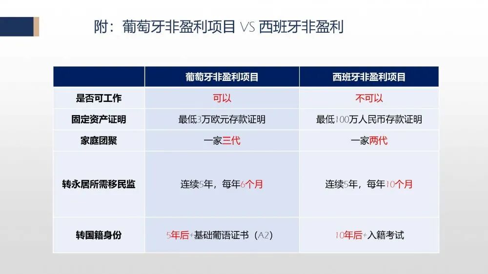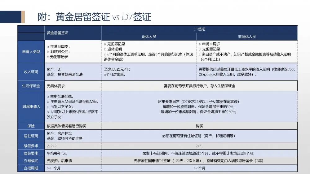 就同是在葡萄牙居留项目上,我们也做了对比,相对于黄金居留签证,除去居住要求外,费用上真是很便宜了。