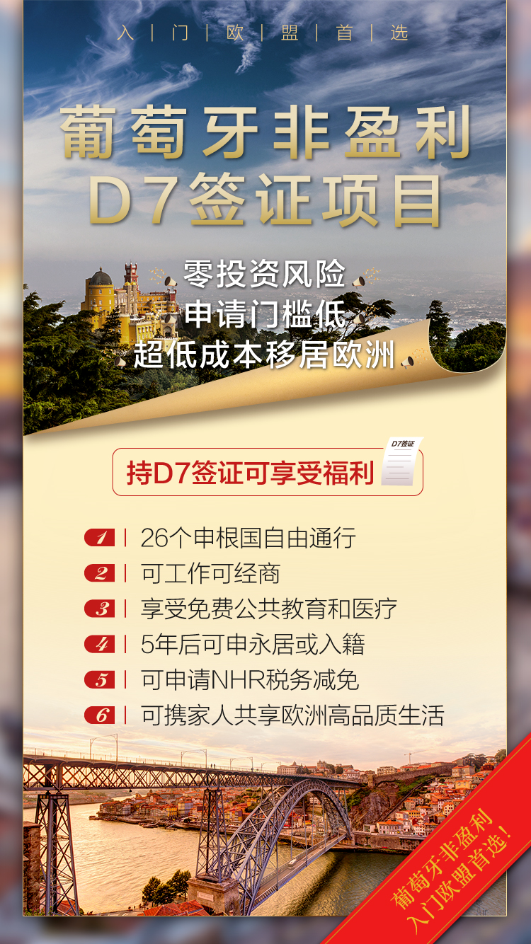 现在申请葡萄牙D7签证,明年就可以登陆葡萄牙啦!