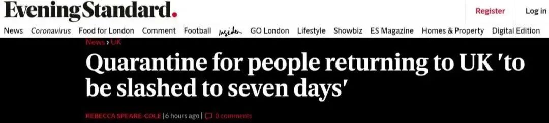 随着疫情的变化,英国政府的入境隔离政策也有所调整。英国政府正在计划彻底改革入境隔离规定:从隔离名单上的国家和地区返回英国的旅行者的隔离时间从14天削减到7天。