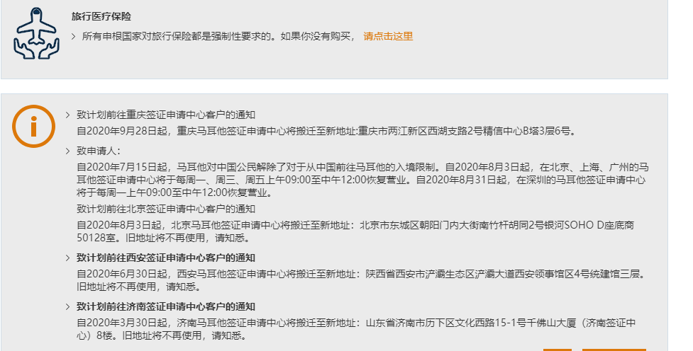 签证申请:北京、上海、广州马耳他签证中心每周一、周三、周五上午09:00至中午12:00可递交签证。深圳马耳他签证中心每周一上午09:00至中午12:00可递交签证。