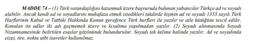 基于《土耳其公民法》第 46 条 74 款 5901 号规定: