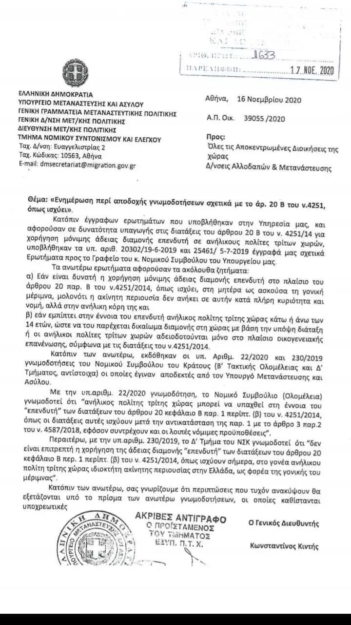 希腊黄金签证政策再次更新!根据希腊移民政策部的最新公告,希腊政府对希腊移民法第4251/2014号-第20B条进行了更新,并建议出台一项法案:第三国未成年人可以作为主申请人购买房屋,并发放黄金签证。