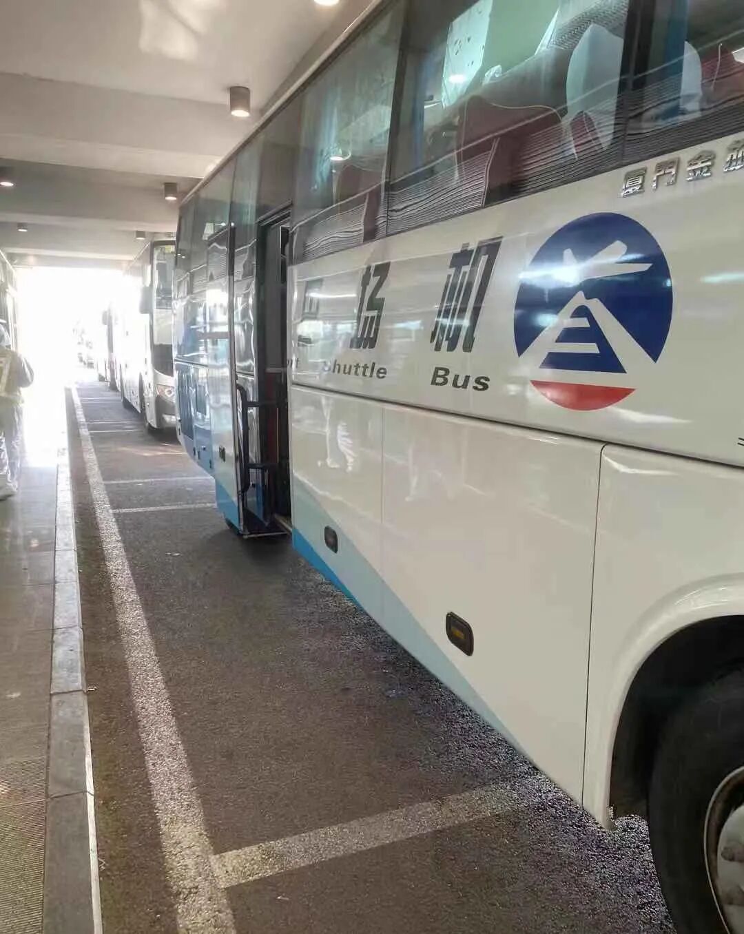 机场有专人疏导指引,随后乘坐机场巴士前往酒店,行进中全程带着口罩开展工作,严肃中带着专业,专业中不乏温暖。