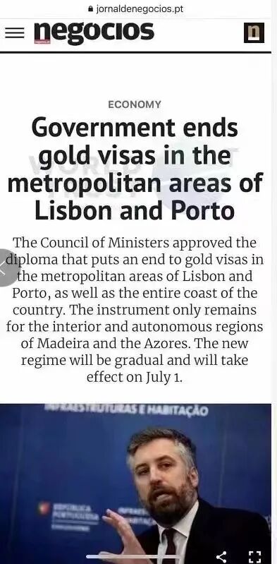 2020年12月22日,葡萄牙部长会议讨论了里斯本和波尔图黄金移民政策的相关修正案。最终决定,里斯本和波尔图的黄金移民政策将于2021年7月1日开始实施,过渡期预计将在2022年完全完成。