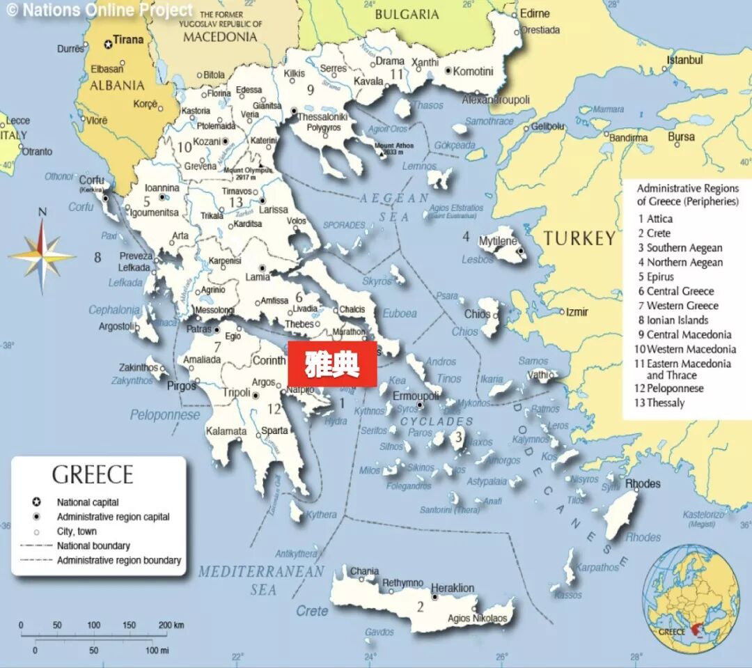 地理位置:希腊位于欧洲、亚洲和非洲的十字路口,战略地位重要。其位于巴尔干半岛南端,西北邻阿尔巴尼亚,北部邻马其顿共和国和保加利亚,东北邻土耳其。