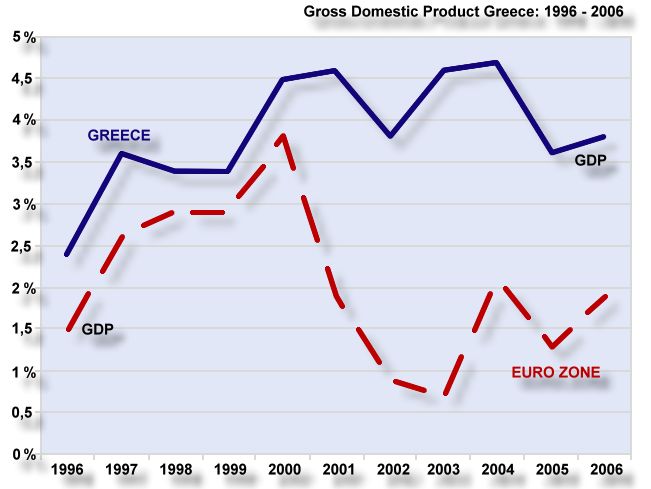 经济:希腊拥有综合了市场经济以及占GDP一半左右的公共版块。旅游业是支柱产业,占希腊GDP以及外汇收入的很大一部分(15%左右)。希腊是欧盟经济援助的主要受惠国,受欧盟援助的资金大约占总GDP的3.3%,在过去几年中希腊经济稳步增长。