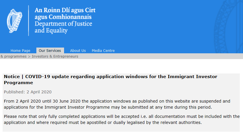 截至今日,爱尔兰移民归化局的移民申请办公室没有因疫情影响而关闭,可以正常接收移民申请,投资人可以正常递交申请,审批时间大约4-6个月,该时期暂时没有新法案出台。