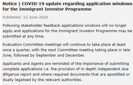 为了控制疫情,避免集中办公,爱尔兰司法部、移民局今日发布公告,在听取有关各方意见反馈后,决定即日起取消所有窗口期限制,随时可以递交爱尔兰投资移民申请。