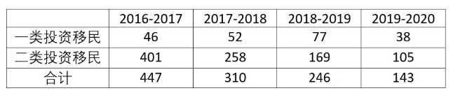 新西兰投资移民批准人数统计