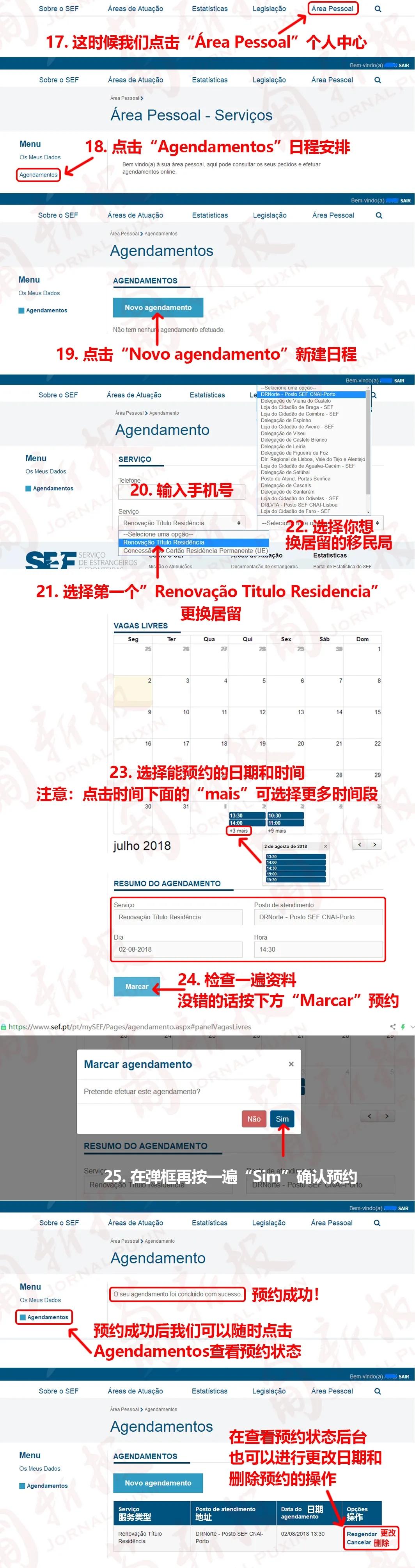 下面这部分是账号注册成功以后预约更换居留的步骤: