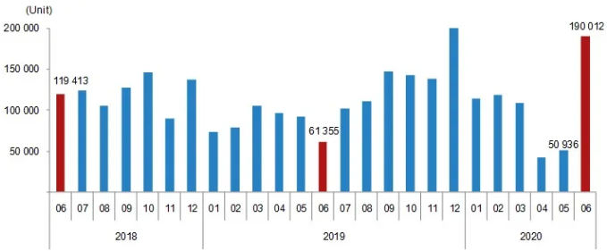 2020年6月的土耳其整体房屋销售量与去年同期相比增长了209.7%,达到19万套。就2020年6月的房屋销售而言,i̇stanbul的房屋销售份额最高,为15.2%,售出了28,799套房屋;紧随i̇stanbul其后的是首都安卡拉和i̇zmir,安卡拉和伊兹密尔的房屋销售量分别为21,915套和11,690套,份额占比分别为11.5%和6.2%。房屋销售最少的省份是阿达汗省,有29处房屋销售,哈卡里省有40处房屋销售,巴伯特省有68处房屋销售。