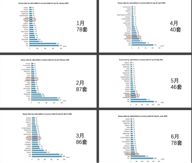 据土耳其统计研究所(TurkStat)的数据显示,2020年1至6月,中国公民共购买了415套房产。今年6月,他们以购买了78套公寓排在第三位。在外国公民在土购房榜单上排到第八位,其中6月购房78套排第三,5月购房46套排第四,4月购房40套排第五。此前三年,在外国人购房榜单上中国从未排进前二十。媒体称这是土耳其房产市场上的“中国惊喜”,这也是必然的趋势。