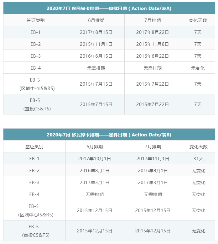 今天美国国务院公布了2020年7月排期。职业移民中表A和表B变化甚微,均前进7天。表B此月开始使用,但也只有EB-1有31天的推进。本财年就剩3个月,不知移民局是否会在未来三个月放宽限额,用完2020财年的移民数量。