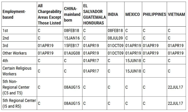 我们先来看看国务院的排期表,然后静等USCIS的排期表(通常都是在国务院的表出来的一周以内会出来的,我们会在第一时间给大家分析的)。