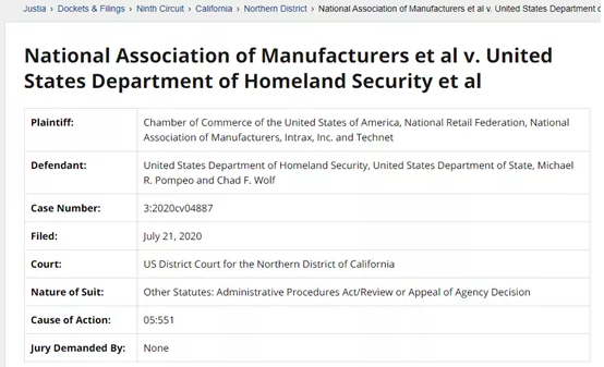 原告要求联邦地区法院 (US District Court, NorthernDistrict of California)撤销并搁置该签证限制令,同时表示:这一政策的影响是立竿见影的,而且如果不加以禁止,将导致美国劳动力市场发生不可挽回的变化。这项签证限制令将不同规模的美国企业以及各行各业造成重大损害。”