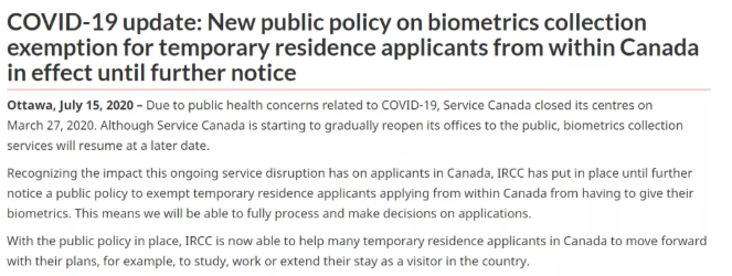 有了该公共政策,IRCC(加拿大移民部)现在可以帮助加拿大的许多临时居留申请者推进他们的计划,例如学习,工作或延长在加拿大的访问者的停留时间。