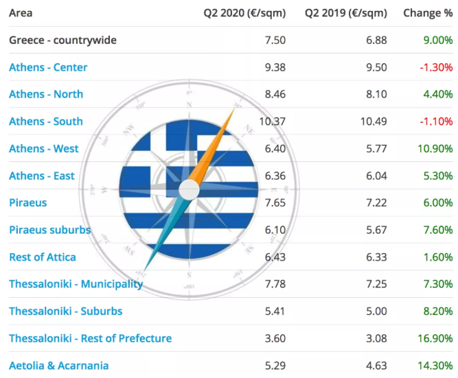 这不,第二季度的房价数据也来了。纵览整体数据,同比2019年第二季度,希腊全国的房价涨势依旧稳定,其中某些地区的涨势几乎出人意料。