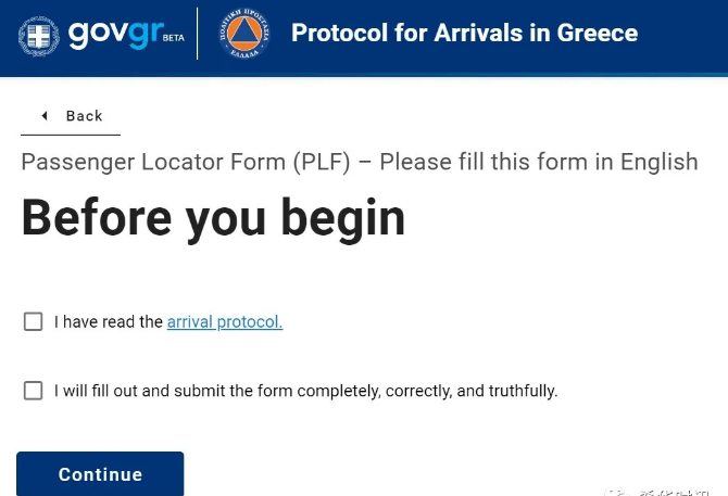 根据最新国际旅客入境新规定,所有旅客从7月9日起,必须在办理登机手续前至少24小时通过电脑或者手机填写和提交“旅客位置表”(https://travel.gov.gr/#/)。内容包括旅客原籍国,详细的出发地,在过去15天曾经去过的国家,在其它国家的停留时间以及在希腊的居住地址等。