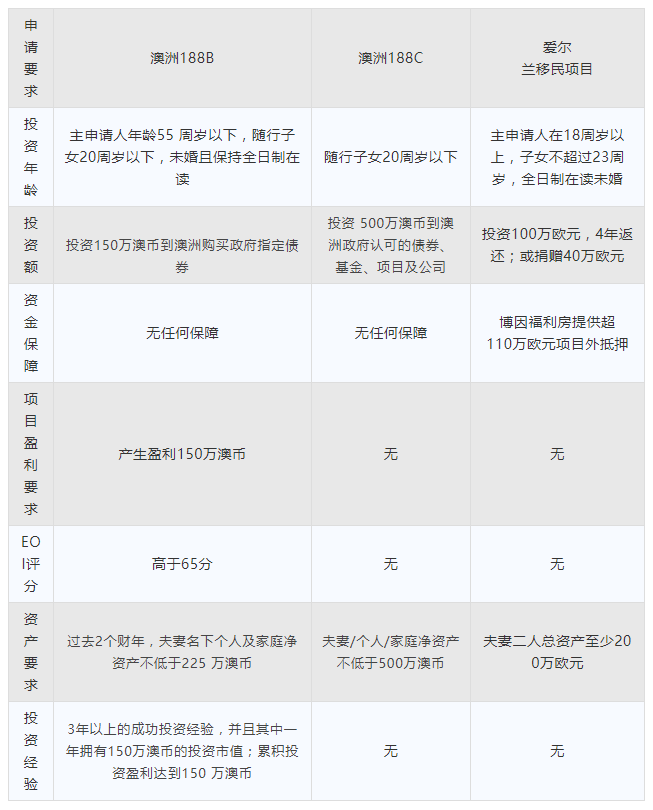 澳洲188B项目VS爱尔兰移民项目