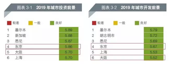 东京已经连续3年蝉联投资前景城市宝座,大阪为新上榜城市。