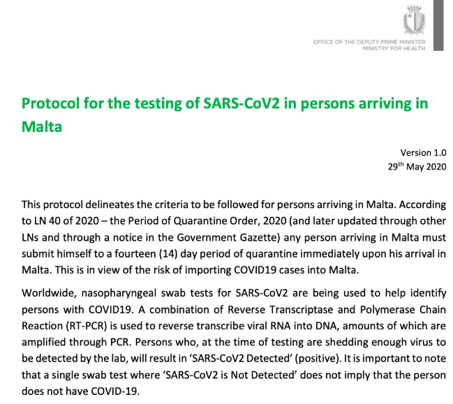 尽管关闭了马耳他的边界,但仍收到大量回国要求,以及基本工人入境的要求。接受请求的人员既有空运也有海运。除此之外,现在将要求所有抵达马耳他的人进行以下测试。根据法律,该规定为强制性,抵达马耳他的人必须遵守14天的隔离规定。