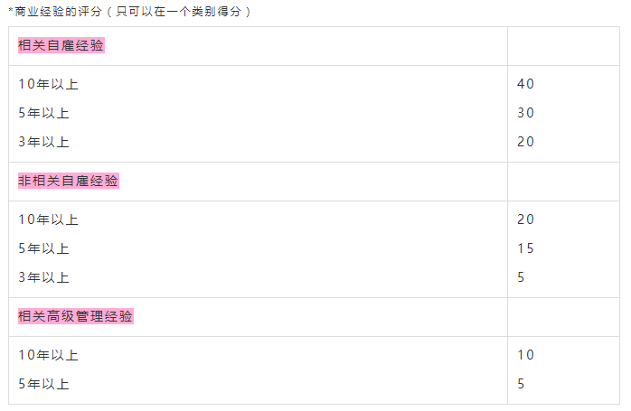 创业工作签证打分系统: