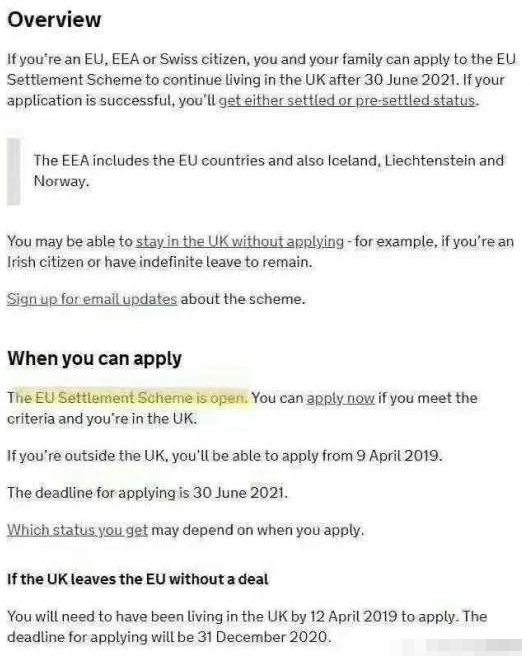 目前,英国移民局官网关于欧盟公民定居英国的申请系统已开放(截止日期为20210630)。在此之前,你可以凭欧盟公民身份,带着家人入境英国并办理定居签证,达到居住条件即可申请英国永久居民。