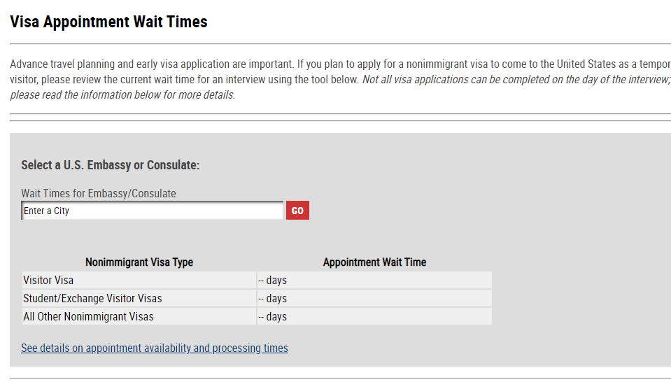 哪里可以看到这个信息呢?请看美国国务院的相关网页(附上6月18日查询到的五大使领馆信息):https://travel.state.gov/content/travel/en/us-visas/visa-information-resources/wait-times.html